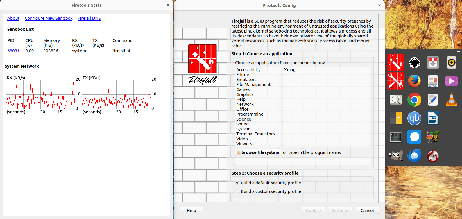 Firetools – це графічний інтерфейс (GUI) для Firejail, який робить його використання більш простим та інтуїтивно зрозумілим для звичайного користувача.